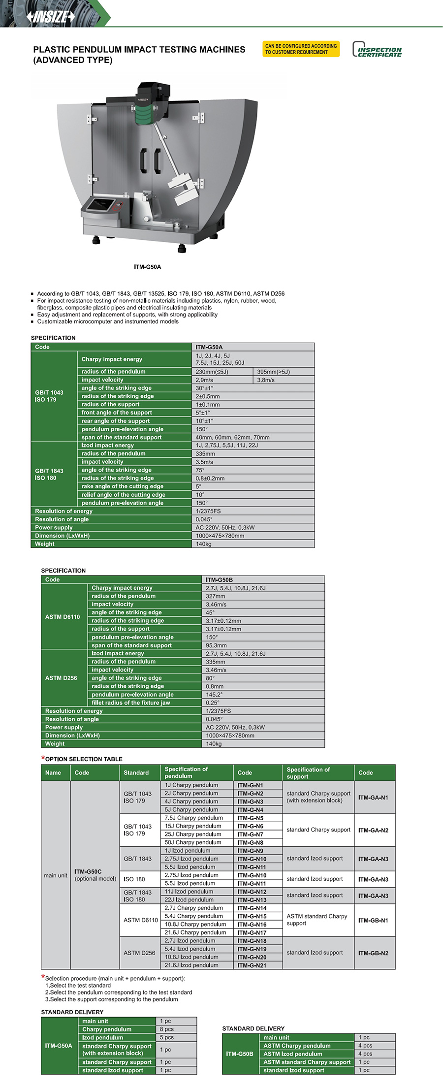 | ITM-G50B | ASTM D6110, ASTM D256 |