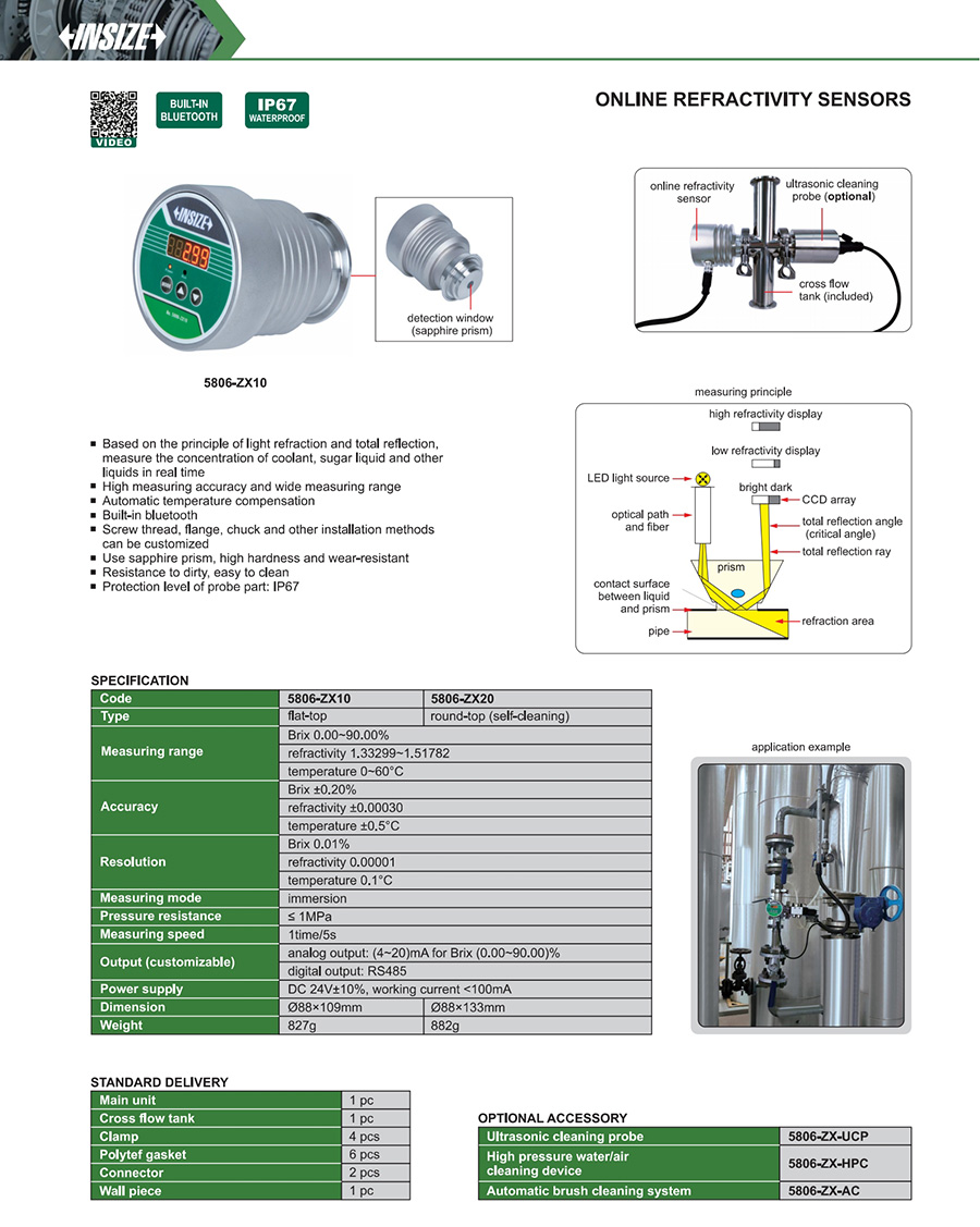 | 5806-ZX20 | refractometer | on-line | water based coolant, sugar, juice | scale |