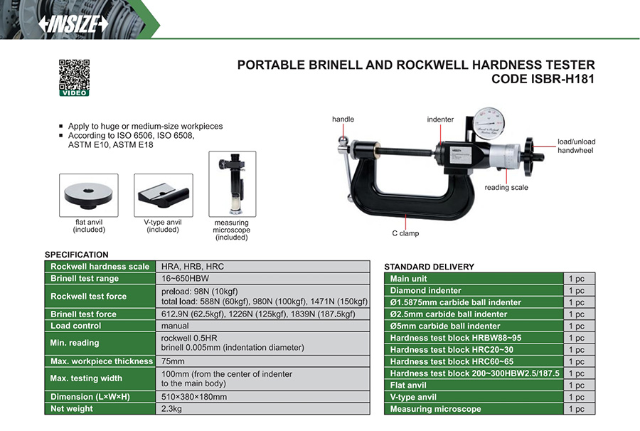 ISBR-H181 manual 100mm (from the center of indenter to the main body) HRA, HRB, HRC