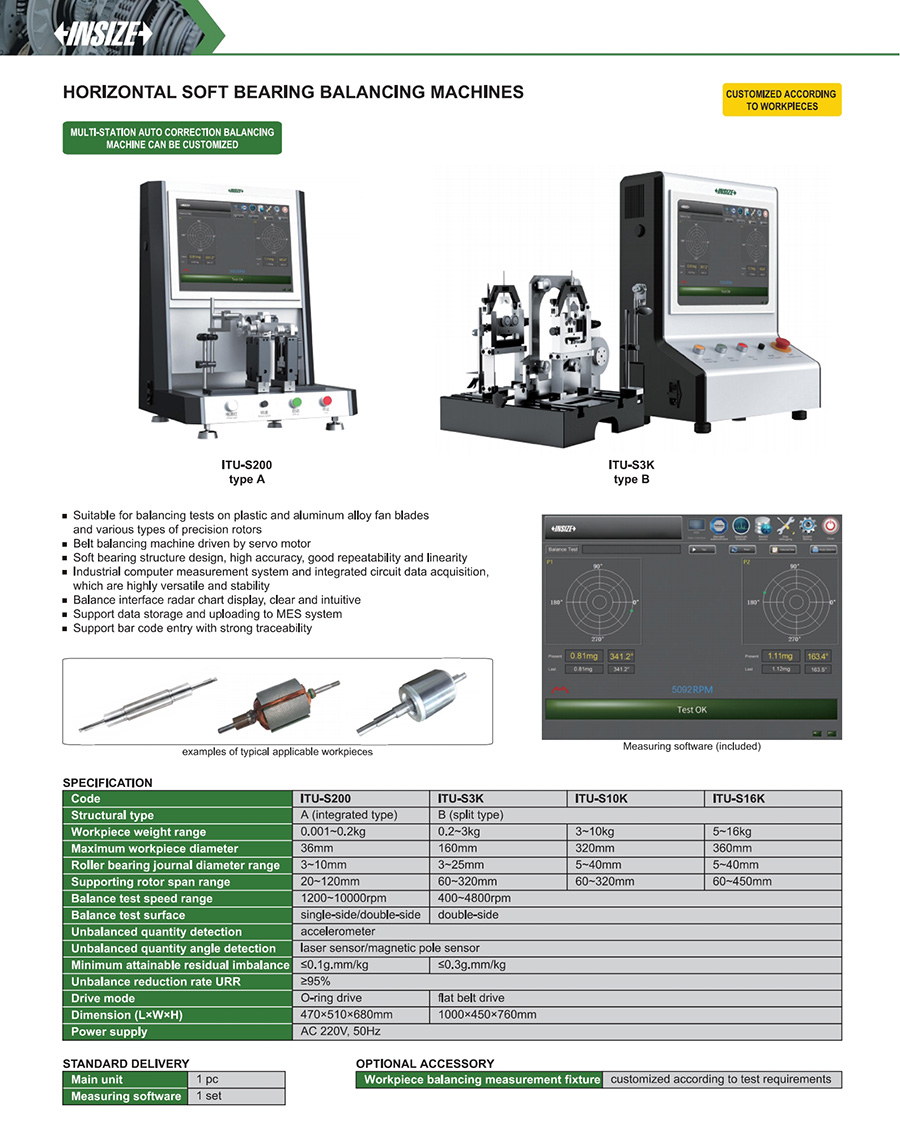 Suitable for balancing tests on plastic and aluminum alloy fan blades and various types of precision rotors