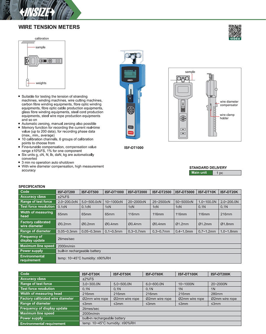 Suitable for testing the tension of stranding machines, winding machines, wire cutting machines, carbon fibre winding equipments, fibre optic winding equipments, fibre optic cable production equipments, glass fibre winding equipments, steel cord production equipments, steel wire rope production equipments and so on