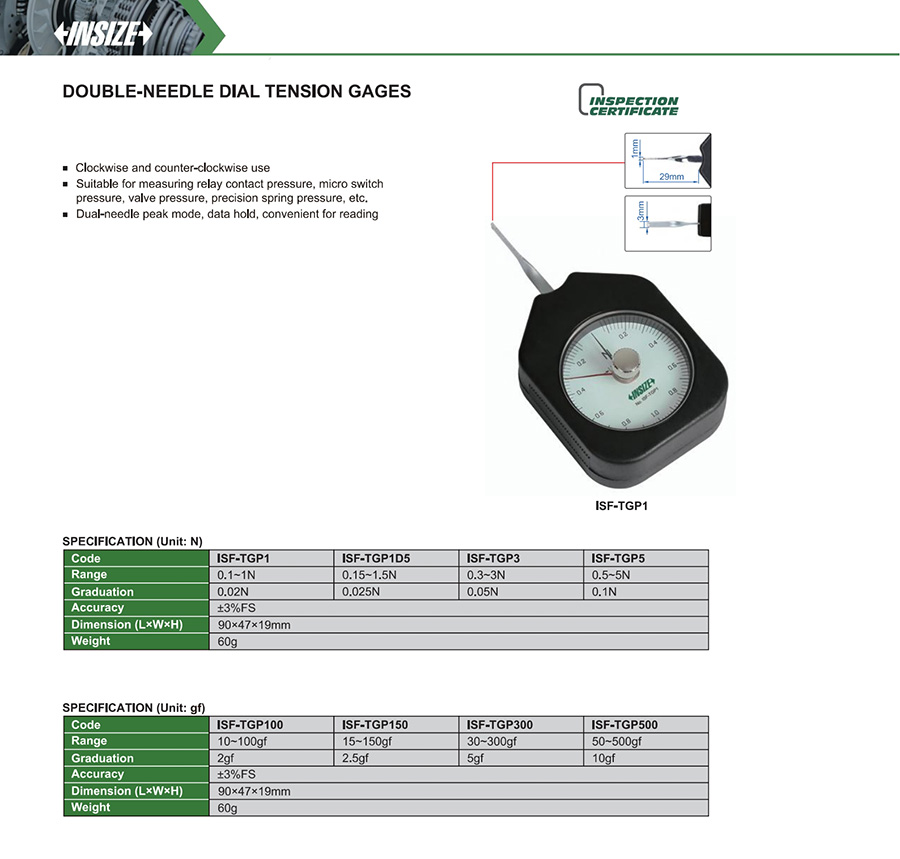 | ISF-TGP500 | 50~500gf | ±2%FS |