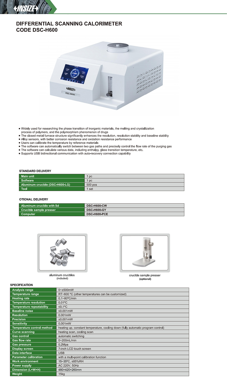 | DSC-H600 | 0~±500mW | 0.01ºC | RT~600 ºC |