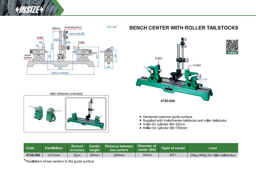 Supplied with V-slot/center tailstocks and roller tailstocks