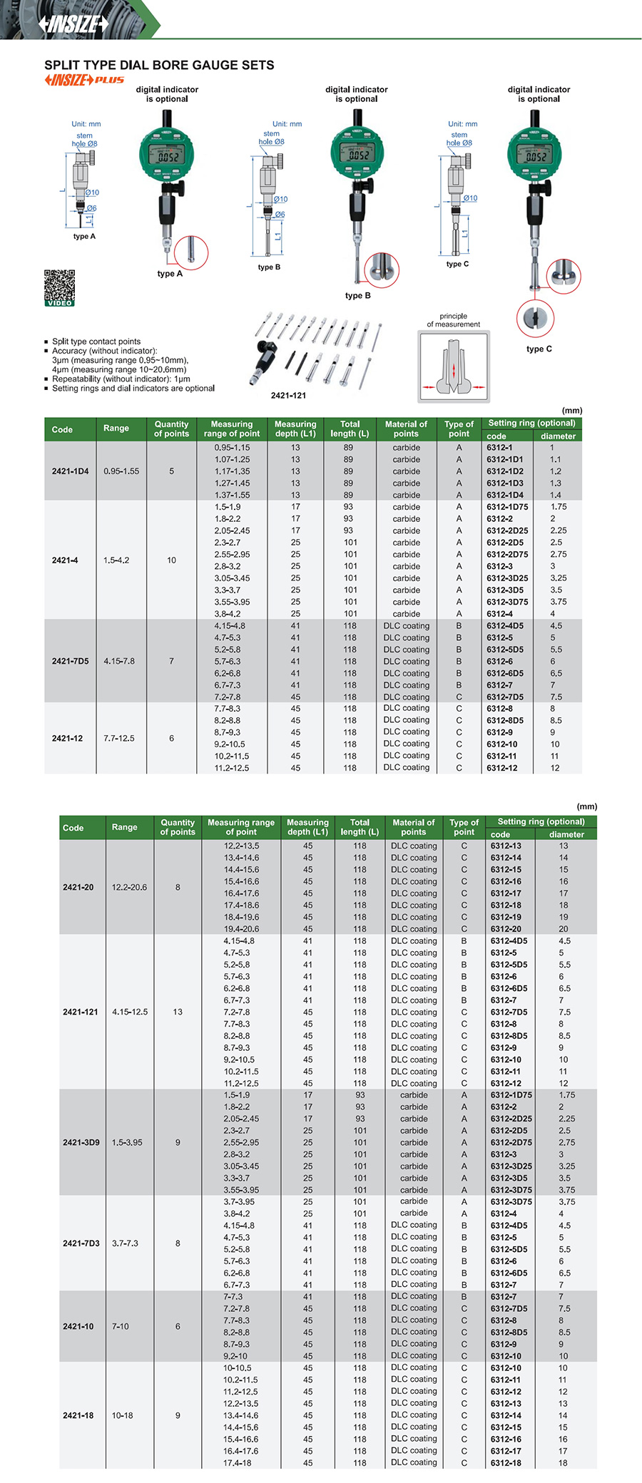 | Code | Range | Accuracy | Repeatability |