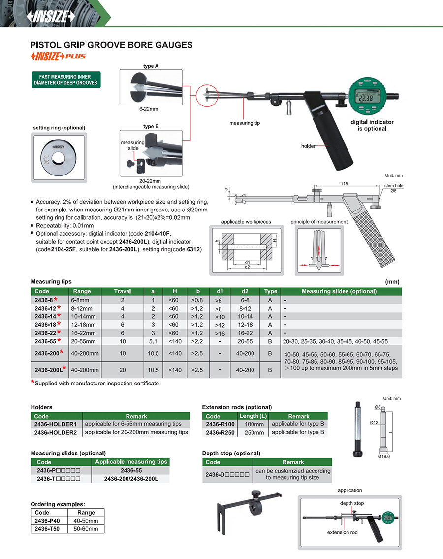 | 2436-200L | 40-200mm | 2% of deviation between workpiece size and setting ring | 0.01mm |