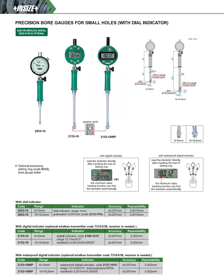 | 2153-18WP | 10-18.5mm | ±0.007mm | 0.002mm |