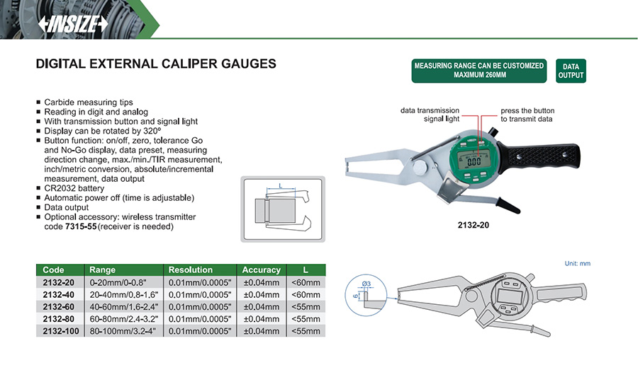 | 2132-60 | 40-60mm/1.6-2.4" | ±0.04mm | 0.01mm/0.0005" |