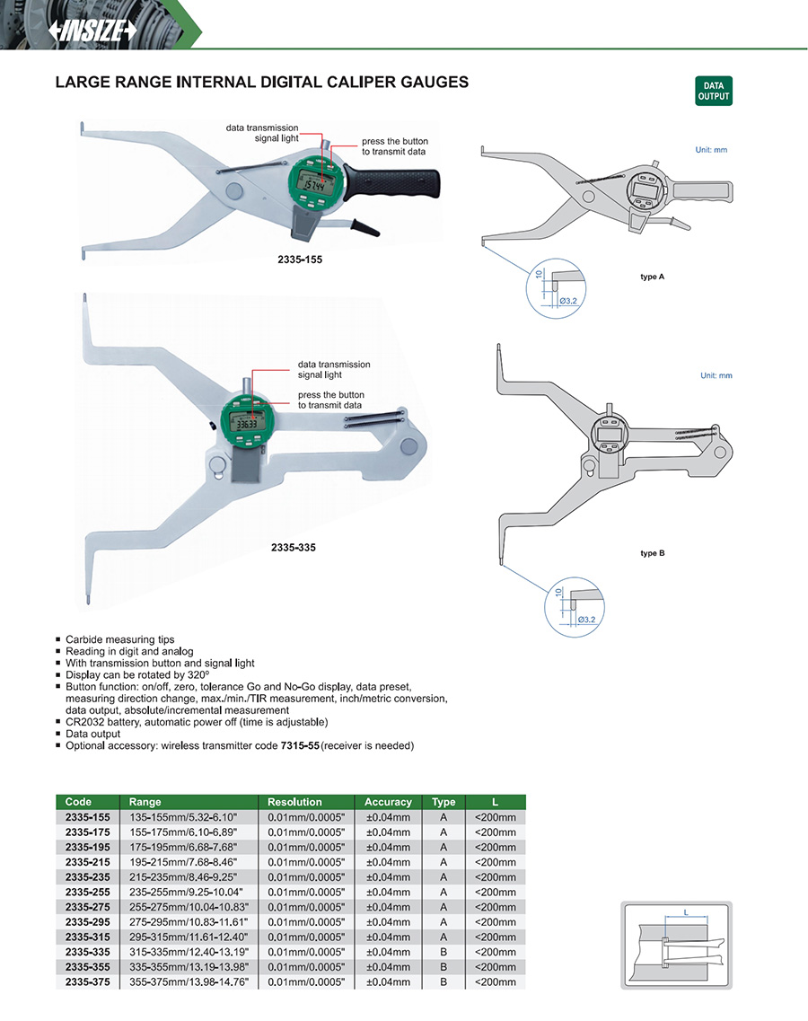 2335-155 135-155mm/5.32-6.10" ±0.04mm 0.01mm/0.0005"