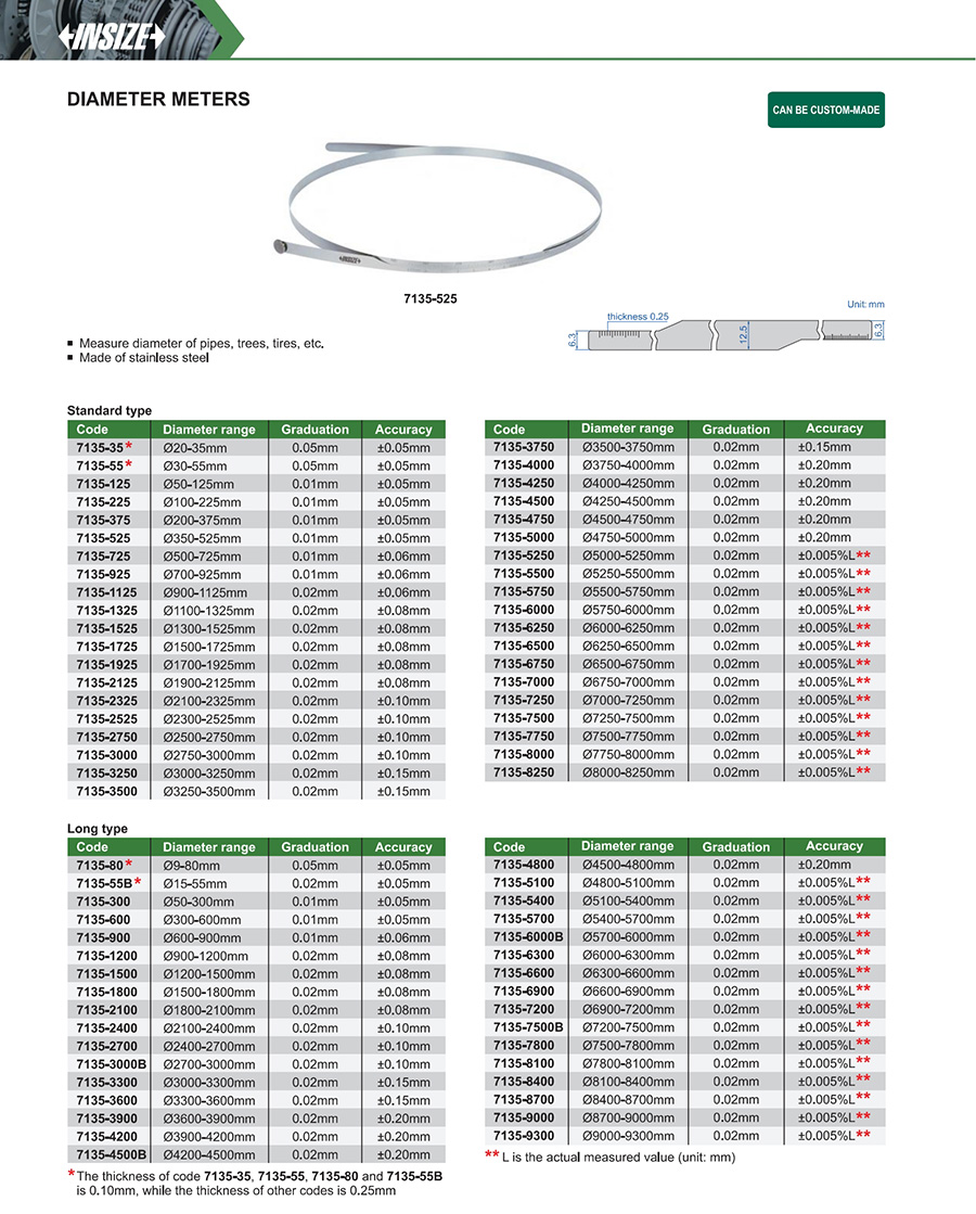 | 7135-525 | ±0.05mm | 0.01mm | Ø350-525mm |