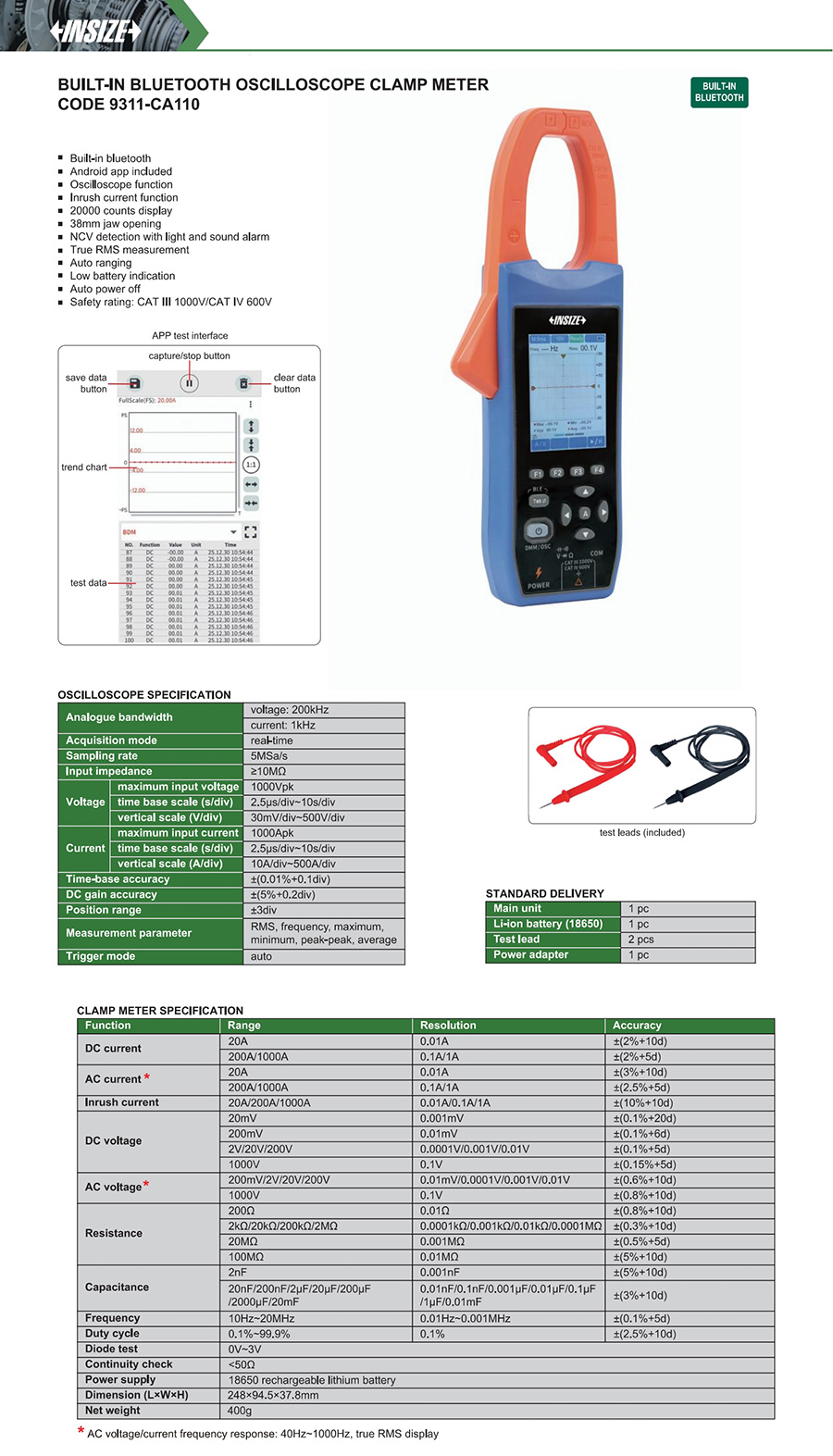 Safety rating: CAT III 1000V/CAT IV 600V