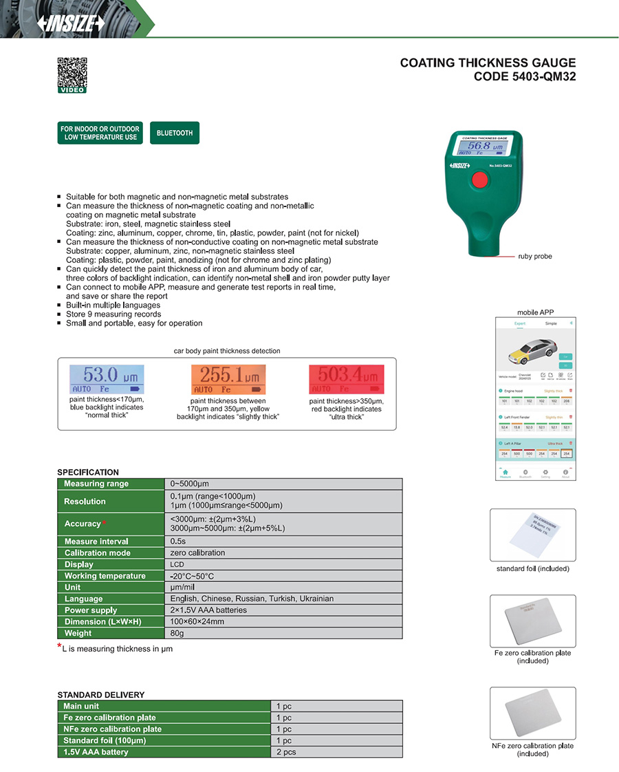 5403-QM32 0~5000μm <3000μm: ±(2μm+3%L), 3000μm~5000μm: ±(2μm+5%L) 0.1μm (range<1000μm), 1μm (1000μm≤range<5000μm) no
