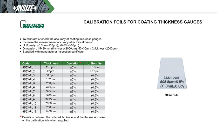 | 9503-FL3 | 50.5μm | ±0.6% |