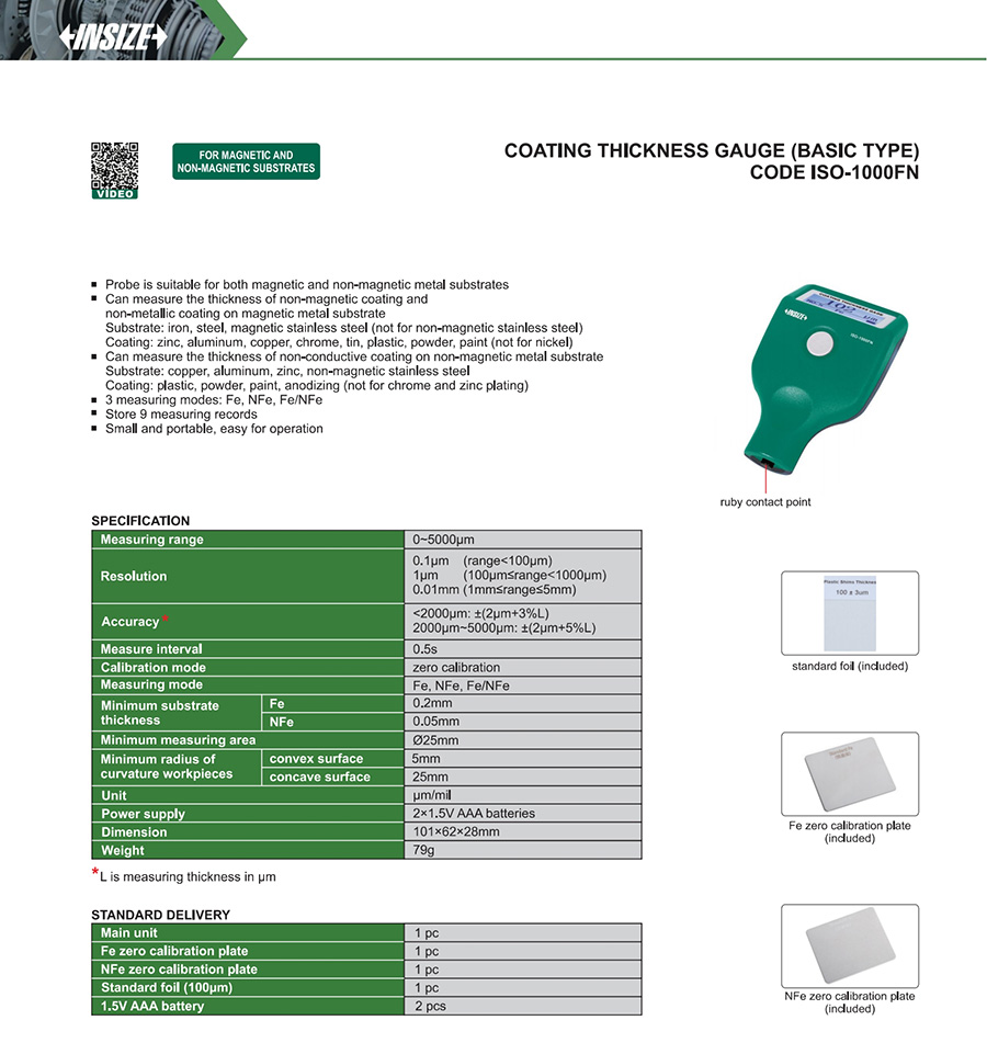 ISO-1000FN 0~5000μm <2000μm: ±(2μm+3%L), 2000μm~5000μm: ±(2μm+5%L) 0.1μm (range<100μm), 1μm (100μm≤range<1000μm), 0.01mm (1mm≤range≤5mm) no