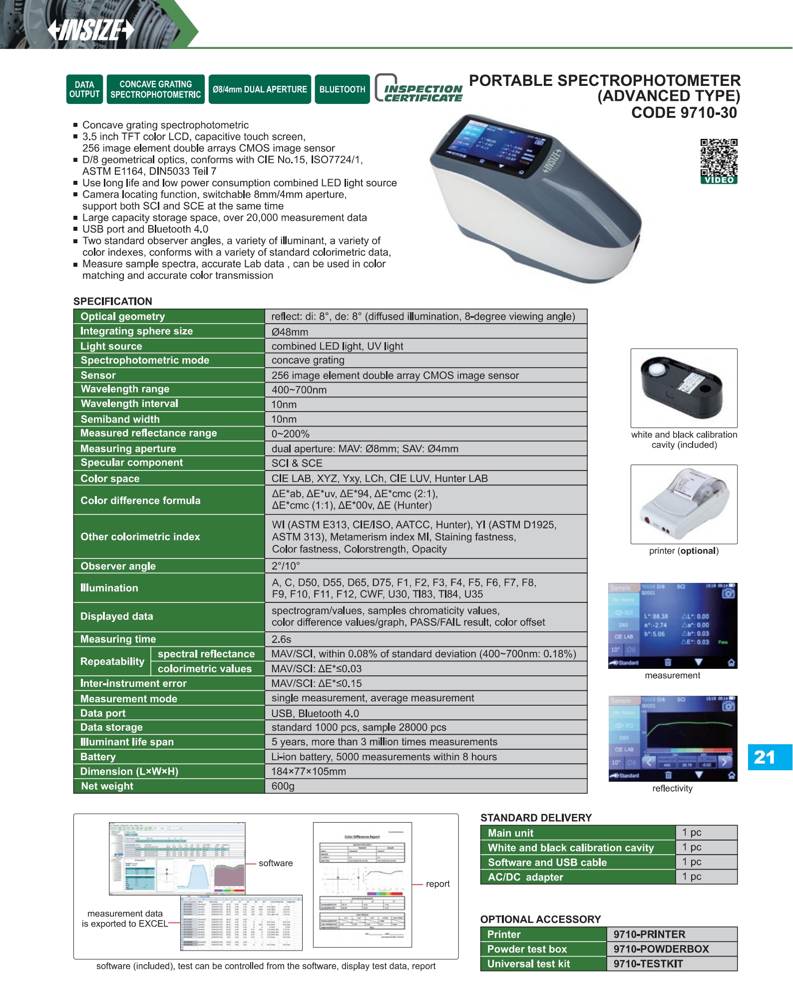 Two standard observer angles, a variety of illuminant, a variety of color indexes, conforms with a variety of standard colorimetric data