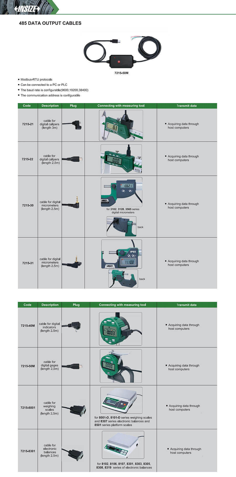 | 7215-22 | cable for digital calipers (length 2.5m) |