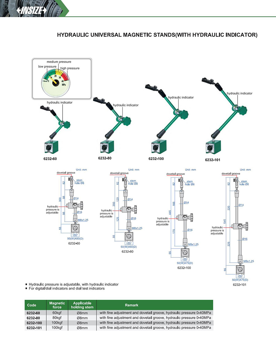 Hydraulic pressure is adjustable, with hydraulic indicator