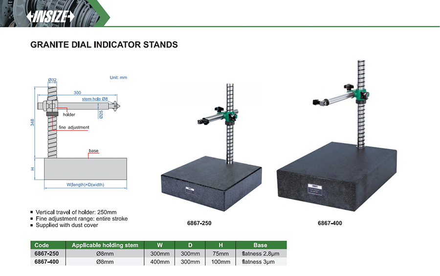 Vertical travel of holder: 250mm