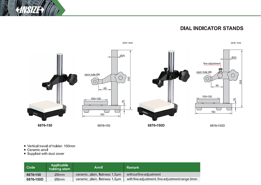 Vertical travel of holder: 150mm