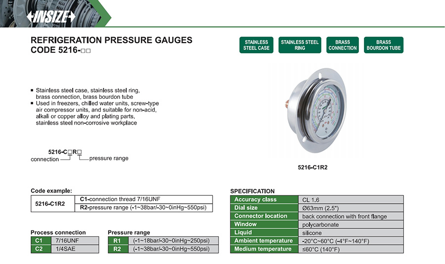 | 5216 | 7/16UNF, 1/4SAE | Ø63mm | back connection with front flange | polycarbonate |
