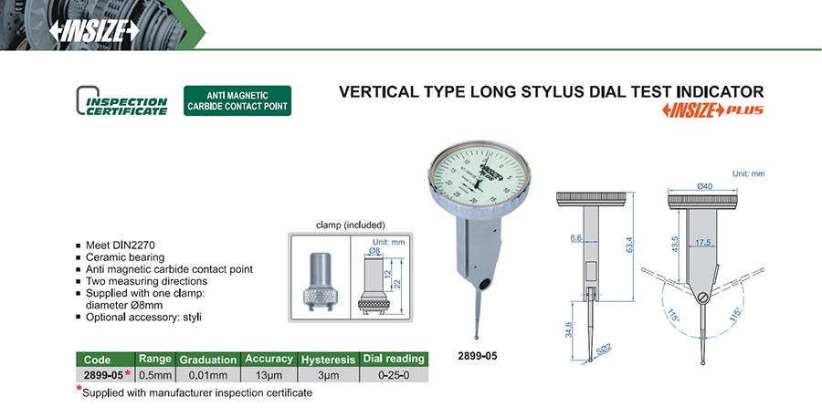 Home / Dimensional Metrology / Measuring Tools / Indicators And Dial Indicator Stands / Dial Test Indicators