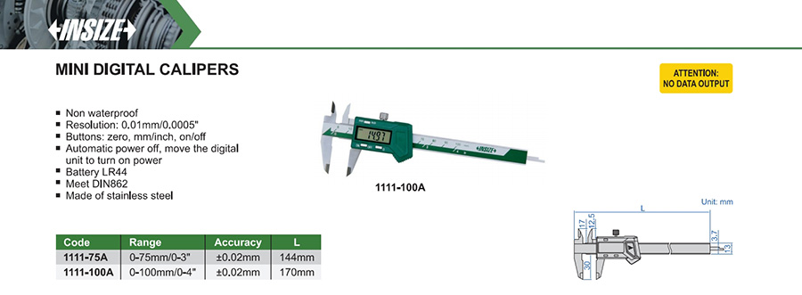 | 1111-100A | 0-100mm/0-4" | ±0.02mm | 0.01mm/0.0005" | without data interface |
