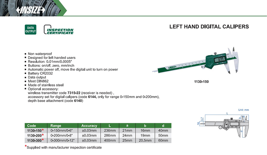 | 1130-150 | 0-150mm/0-6" | ±0.03mm | 0.01mm/0.0005" | with data interface |