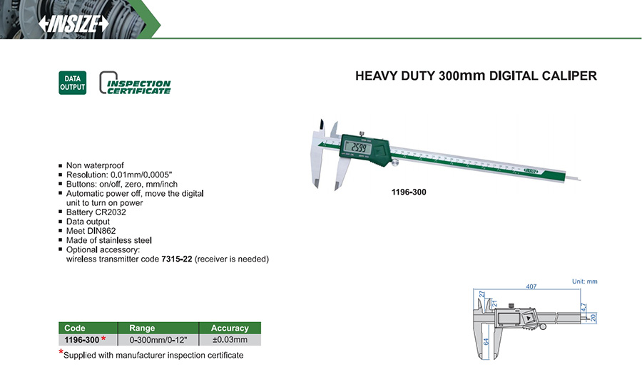1196-300 0-300mm/0-12" ±0.03mm 0.01mm/0.0005" with data interface