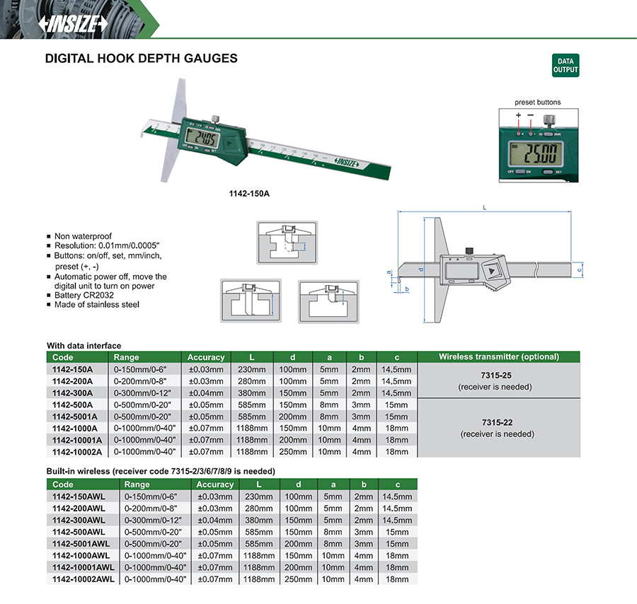 1142-150AWL 0-150mm/0-6" ±0.03mm 0.01mm/0.0005" built-in wireless