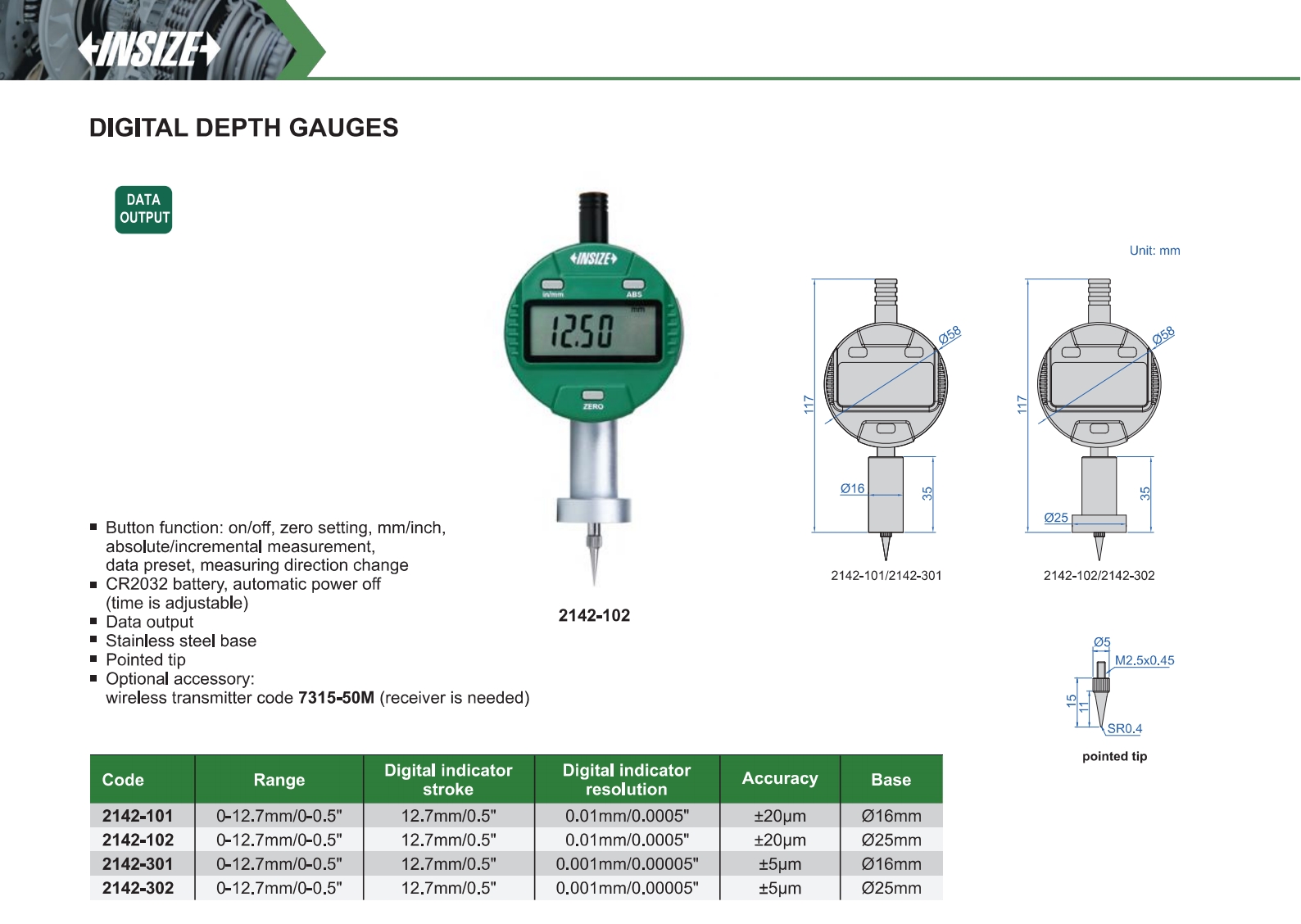 2142-302 0-12.7mm/0-0.5" ±5µm 0.001mm/0.00005" with data interface