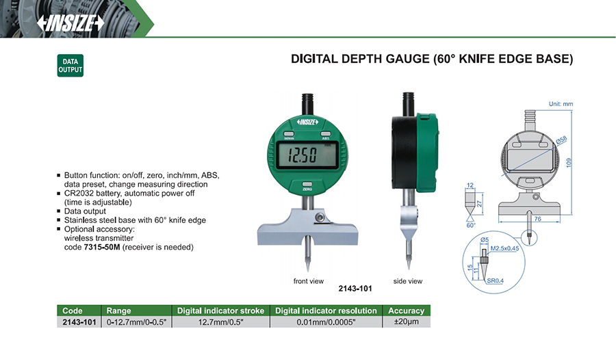 2143-101 0-12.7mm/0-0.5" ±20µm 0.01mm/0.0005" with data interface