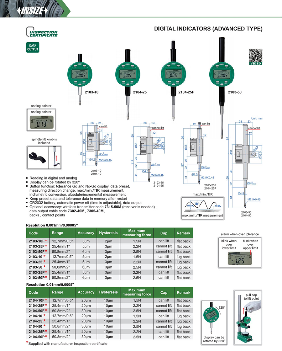 | 2103-25 | 25.4mm/1" | 5µm | 0.001mm/0.00005" |