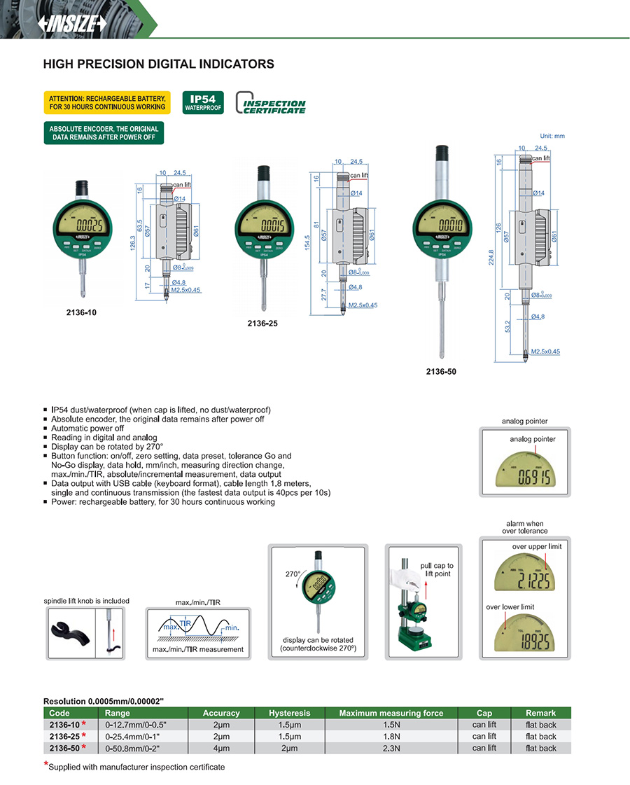2136-10 0-12.7mm/0-0.5" 2µm 0.0005mm/0.00002"