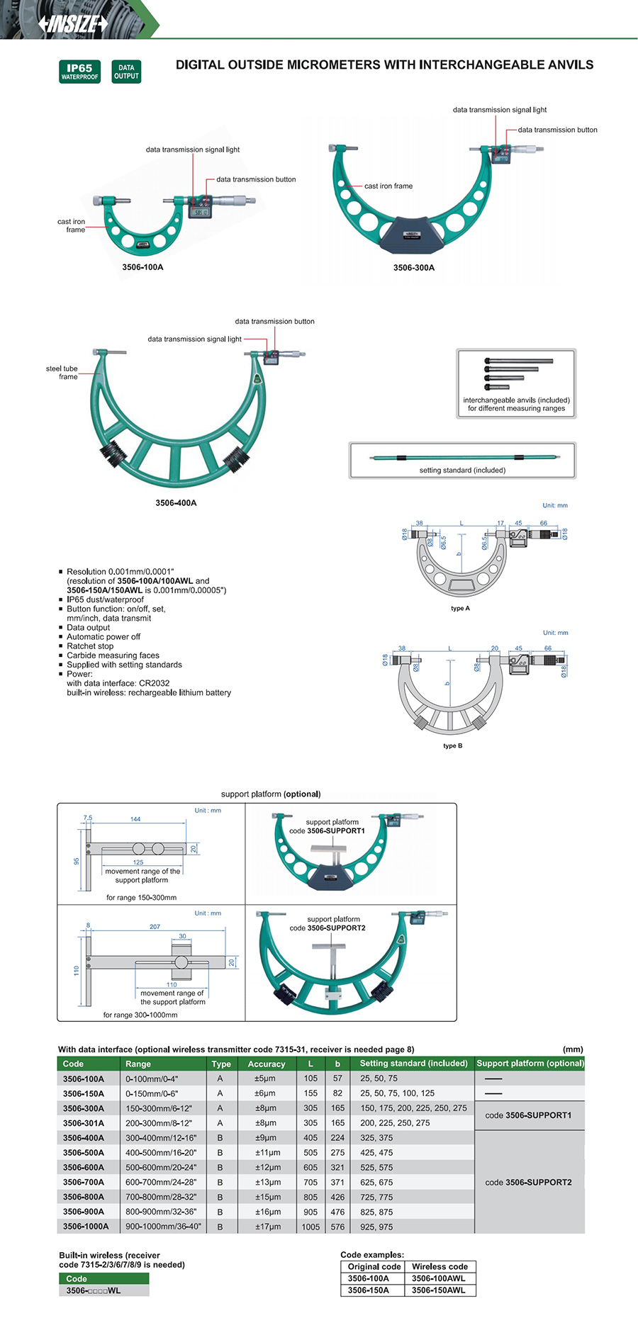 3506-300AWL 150-300mm/6-12" ±8μm 0.001mm/0.0001" built-in wireless