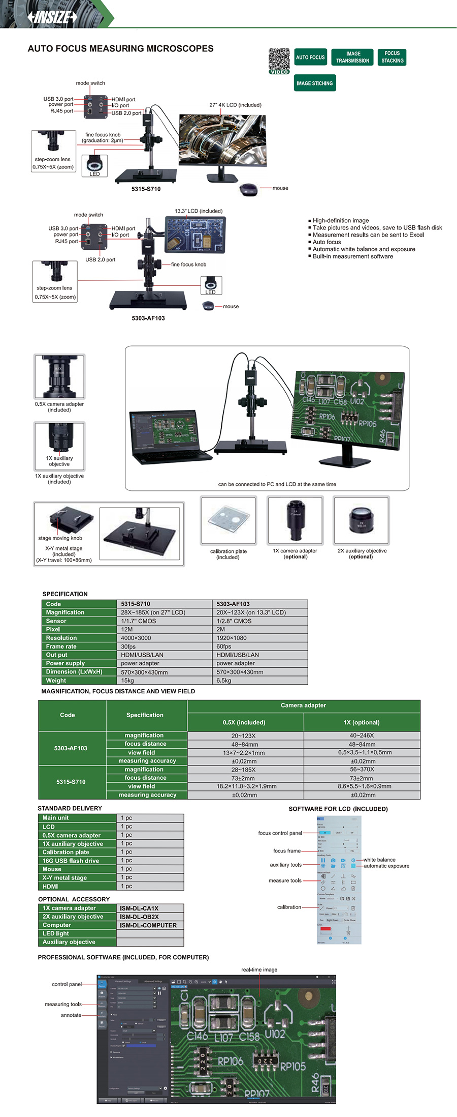 | 5315-S710 | auto focus digital microscopes | 28X~185X | 18.2x11.0~3.2x1.9mm, 8.6x5.5~1.6x0.9mm | 12M |