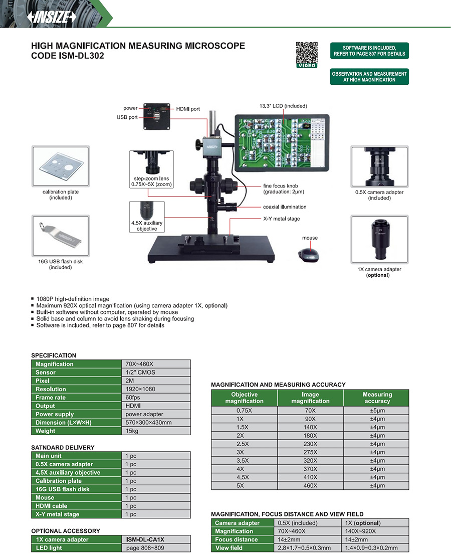 | ISM-DL302 | digital measuring microscopes | 70X~460X | 2.8×1.7~0.5×0.3mm | 2M |