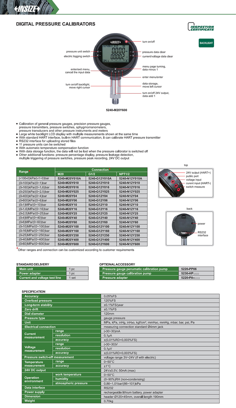 5240 0.05%FS M20, G1/2, NPT1/2 120mm