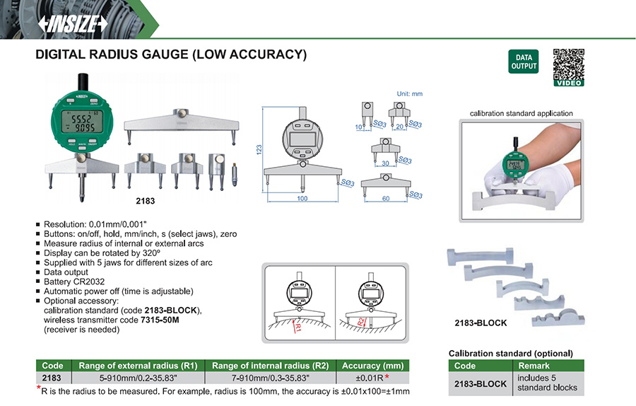 2183 5-910mm/0.2-35.83" ±0.01R(mm) 0.01mm/0.001"