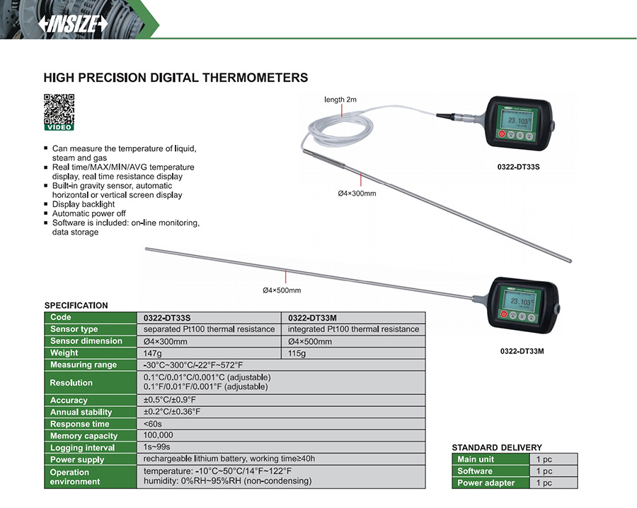0322-DT33M platinum resistor ±0.5°C/±0.9°F 1 yes -30°C~300°C/-22°F~572°F