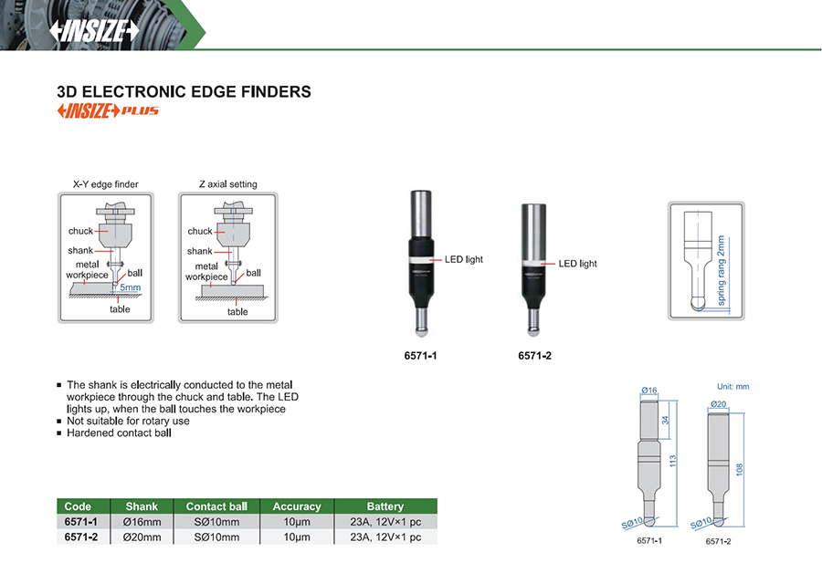 The shank is electrically conducted to the metal workpiece through the chuck and table. The LED lights up, when the ball touches the workpiece