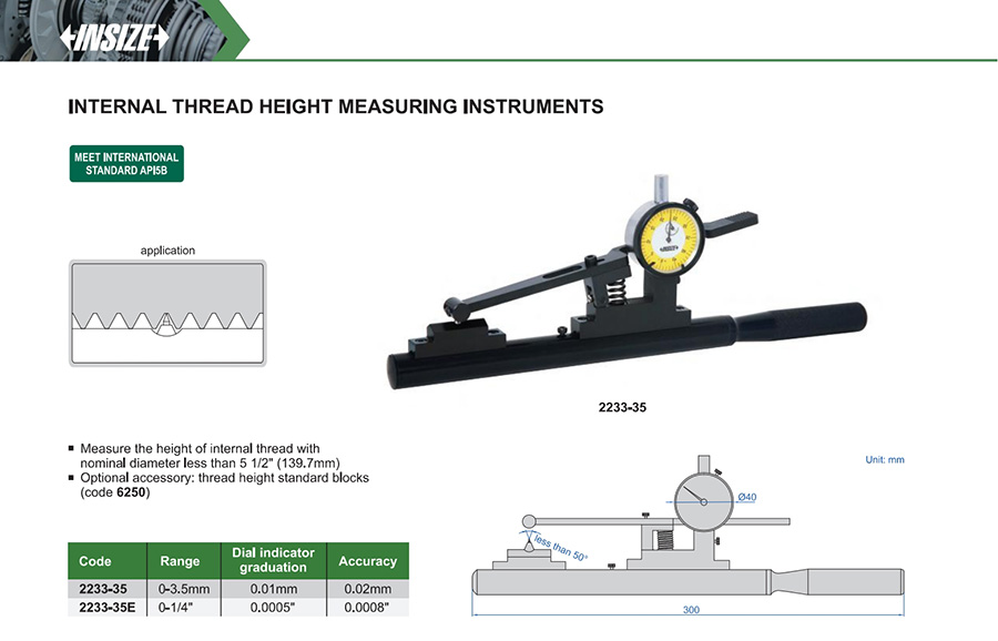 | 2233-35 | 0-3.5mm | 0.02mm | 0.01mm | thread height |