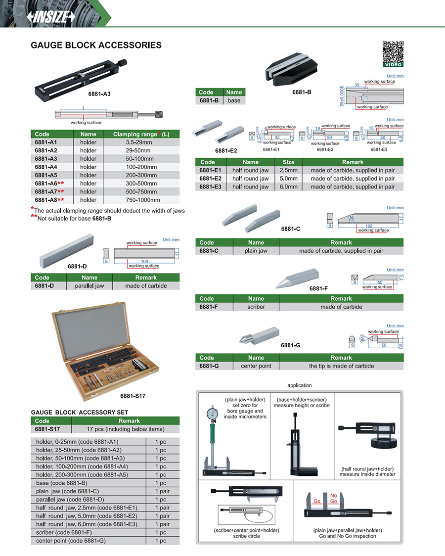 | 6881-S17 | gauge block accessory set |