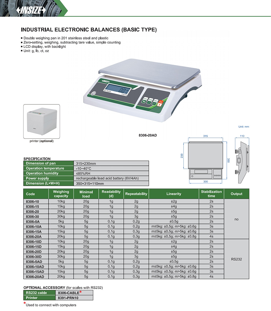 | 8306-20 | 20000g | 1g | 315×230mm |