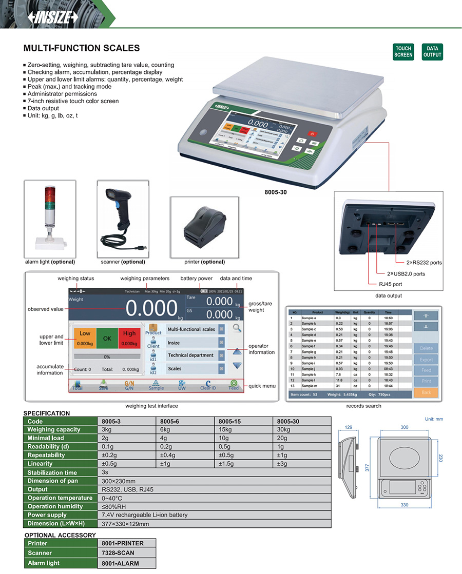 | 8005-30 | 30kg | 1g | 300×230mm |