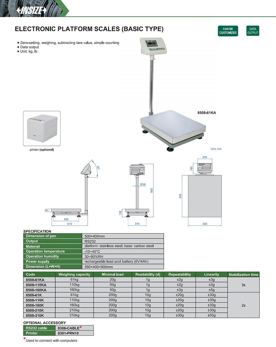 8508-160K 160kg 10g 500×400mm