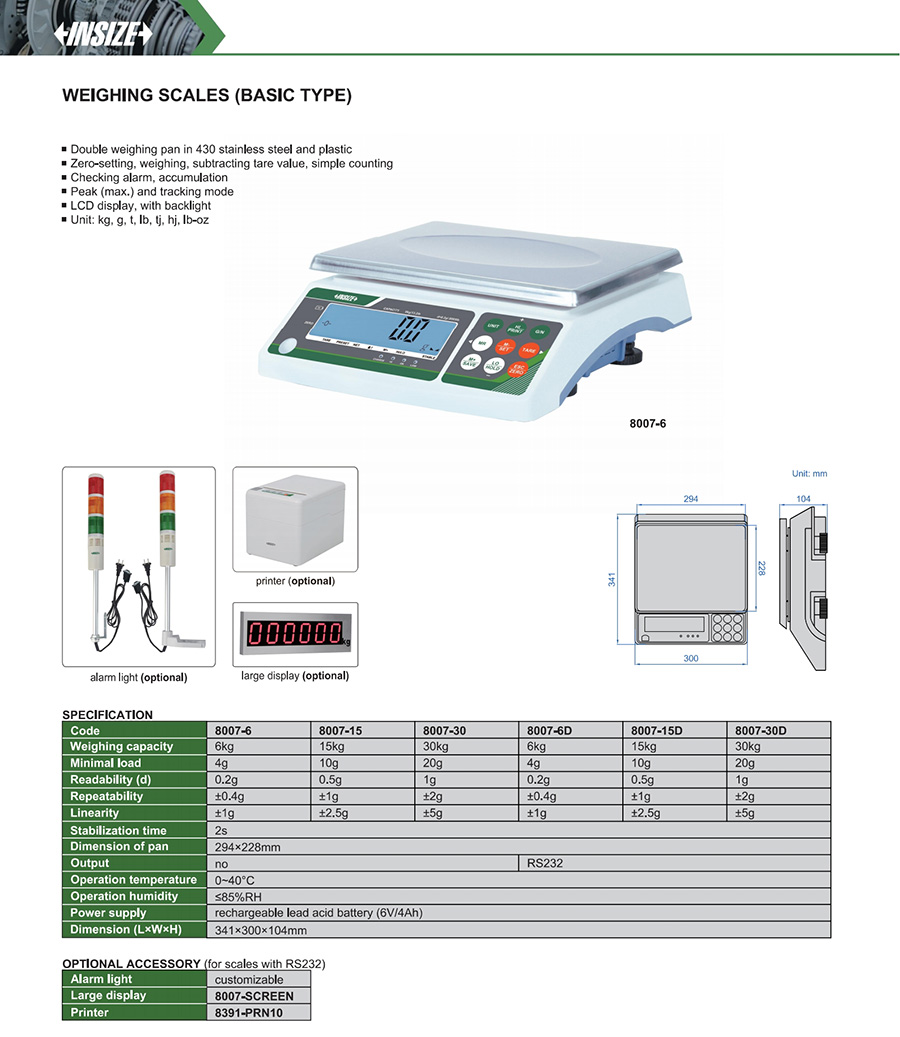 | 8007-30D | 30kg | 1g | 294×228mm |
