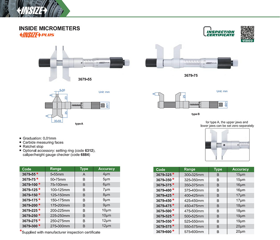 Home / Dimensional Metrology / Measuring Tools / Bore Diameter And Circumference Measuring Tools / Inside Micrometers