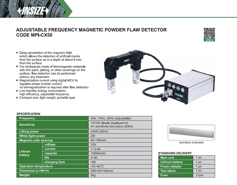 MPI-CX50 15/100 clearly displayed on A1 sensitivity test piece (20Hz) ≥44N (20Hz) 40~180mm