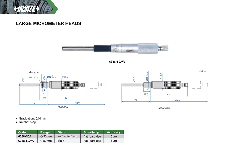 6388-50AW 0-50mm 5μm 0.01mm plain