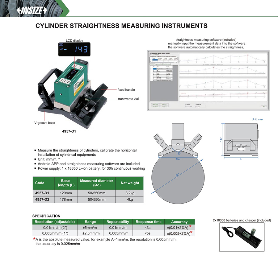 4957-D2 ±2.5mm/m ±(0.005+2%A) 0.005mm/m (1") 0.005mm/m